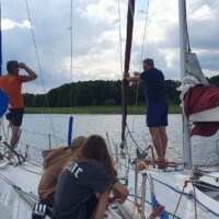 W portach i przystaniach przyjemnie spędzaliśmy czas przy ogniskach, wspólnie śpiewając przy akompaniamencie gitary (dziękujemy Szymonowi i Kasi). Biorąca udział w rejsie młodzież aktywnie uczestniczyła w zabawach, tańcach, rozmowach, żartach jak i w rozgrywkach siatkówki plażowej. Niewątpliwą atrakcją był spływ kajakowy rzeką Sapiną przez jeziora Stręgiel i Pozedrze.