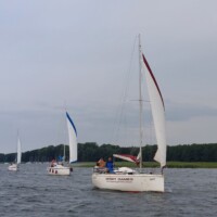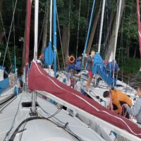 Już po raz trzeci członkowie KŻ Naktuz i – z każdym rejsem większa – rzesza Przyjaciół Klubu eksplorowali wspaniałe mazurskie zakątki. Ze względu na dużą liczbę uczestników startowaliśmy z dwóch portów: Skłodowo (Karolina – Janmor 28, Gryfny – Twister 780, Karlik – Tes 678 BT) i Węgorzewo (Mars, Patagon – Twistery 800), by spotkać się w malowniczym Porcie Trygort. W kolejnych dniach pływając po jeziorach: Mamry, Przystań, Kirsajty, Dobskim, Sztynorckim oraz Święcajty załogi z poszczególnych jachtów doskonaliły umiejętności żeglarskie, a podczas przerw stawały wspólnie na kotwicy w uroczych bindugach spożywając posiłki i zażywając kąpieli dla ochłody. Nad bezpieczeństwem i szkoleniem uczestników rejsu czuwali jak zawsze niezmordowani sternicy – klubowicze: Adam, Mirek, Marek wraz z Przyjaciółmi: Piotrkiem i Szymonem.